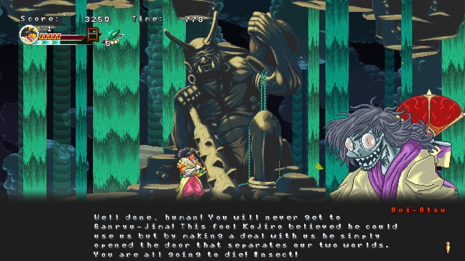Worse, there are no difficulty settings (nor any settings at all, except for volume) which is a bewildering sight for a retro-themed 2022 release. Players dealt with this kind of difficulty because we had to back in the 8- and 16-bit days, but design and player concessions have come a long way since then. Seeing the words ‘game over’ with all of the penalties that come with it in Ganryu 2 will not be a welcome sight.