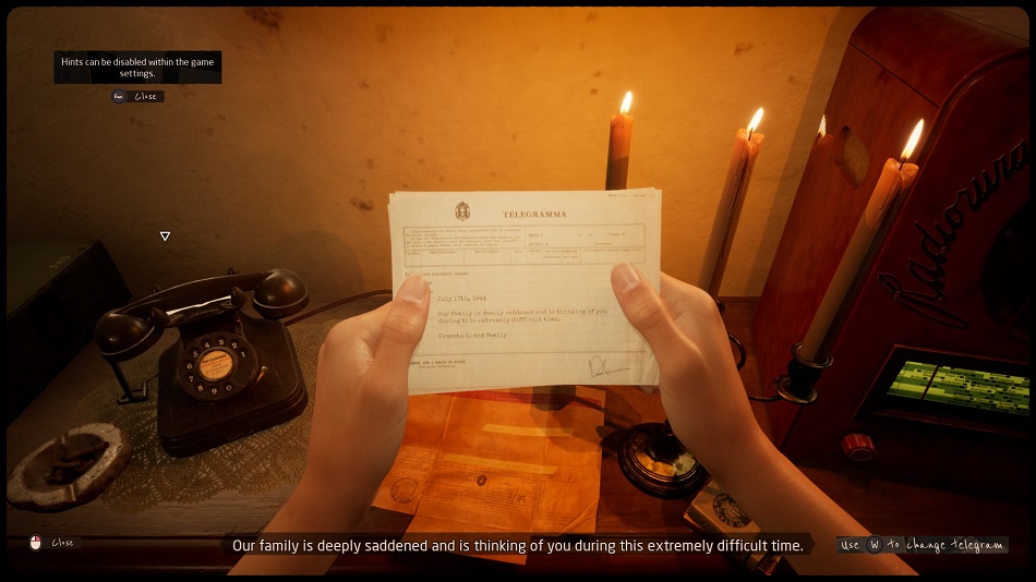 At one point the story grinds to a halt because the game offers the choice to communicate with the partisan resistance forces by using a telegraph as one would in real life, morse code and all. The problem is that, instead of providing a clear morse code scheme, there is a complicated, nonsensical picture to use as a reference. In the end, the puzzle is simple (even though sending and decoding eight messages is a bit much) but I had to resort to looking up Morse code on my phone, which definitely did not support the immersion.