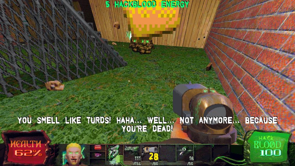 Parents: According to the ESRB, this game is rated M and contains Intense Violence, Blood and Gore, Sexual Themes, Drug Reference, and Language. Whilst the graphics are deliberately primitive, the game is very violent with exploding limbs and lots of blood, although the prevalence of blood depends on whether the violence level is set to normal or extreme in the settings. There are references to suicide, drugs and crude humour such as sexual innuendo, for example, the player character saying he has slept with someone’s mom.
