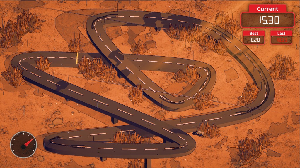 I enjoyed playing Little Laps in small bites, and it’s well-suited to the rhythm of making a few quick attempts at a record time, possibly shaving a few tenths of a second off this lap. In case of a wipeout, I can just hit the reset button and get right back in it.