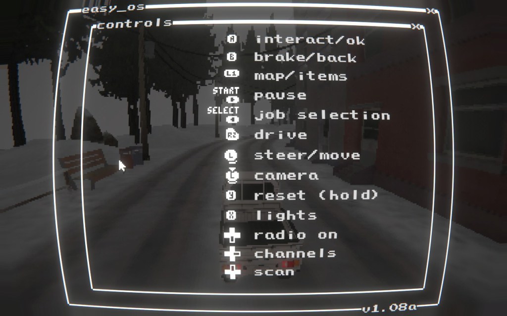 Aesthetics are crucial for Easy Delivery Co.’s success and, thankfully, it more than delivers with its abrasive lo-fi ‘90s styling forming a rock-solid foundation for its foreboding world. Jagged, warping power-lines crisscross vacant streets. Tires spin, straining doggedly against slushy terrain while kicking up chunky white pixels in their wake. High beams click on in the waning daylight, taillights rendering as warm halos in dithering snowfall. There’s a fuzziness to the whole affair – a juxtaposition of warmth and chill that is at once disconcerting as well as curiously comforting.