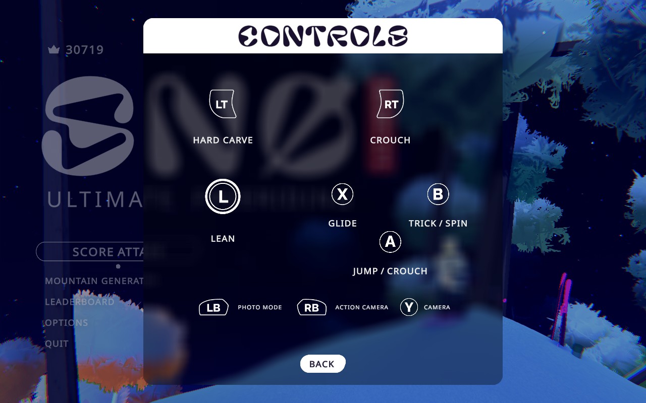 Despite the score chase, finding the rhythm is the real joy of SNØ Ultimate Freeriding, and as the mechanics finally clicked I found myself more entranced by the grace of my skier spinning through the air than by the points I might earn. These moments of beauty became my motivation and, coincidentally, I began climbing the leaderboards. When I tried thinking tactically, planning my movements in advance, scraping by every tree I could to boost my score, I was rarely successful. Freeing myself from that drive allowed instinct to guide my slalom, and suddenly navigation became more natural, and the time between restarts got longer and longer. The developers clearly intended this, as an appropriately titled “Zen Mode” fully foregrounds the aesthetic play by eschewing the score chase altogether.