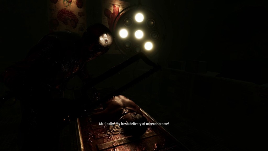 Parents: This game was rated M by the ESRB and features Intense Violence, Blood and Gore, Nudity and Strong Language. The game wallows in its horror vibes, offering buzzsaws, body parts, and blood splattered on every surface. There’s also a naked woman suspended in a liquid tank. Not for children in any way, shape, or form.