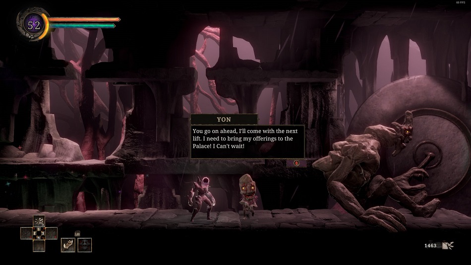 And that’s pretty much all I can say about Grime’s plot with any degree of confidence, because Clover Bite favors the same vague, piecemeal storytelling style that we’ve just accepted as standard for this genre. I’m okay with FromSoft continuing to do this because they’ve got a community able to collectively piece it together and regulate a wiki, but the moment a small indie game asks me to figure all of this out for myself is the moment I stop paying attention to the story altogether. This approach is no longer charming to me. It just feels like I’m being given homework.