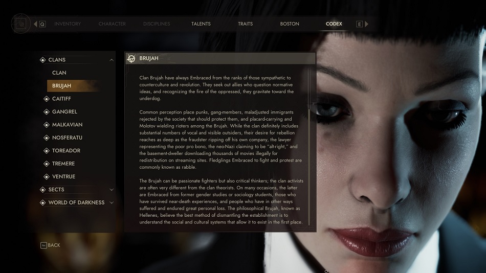 Virtually every named vampire in the game has a lengthy, detailed, and evocatively-written biography — some stemming back centuries. It’s intriguing to read, but constant allusions to past events in the dialogue can make the story hard to break into for mere mortals.
