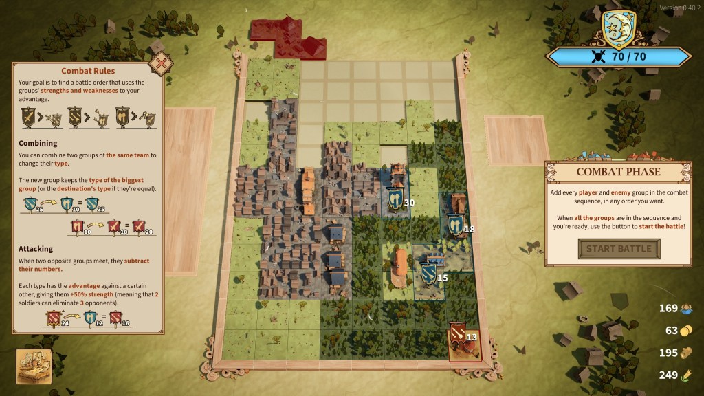 The Republic faction, on the other hand, relies heavily on large buildings and on transforming terrain into “town”, making it unusable for many other buildings. This faction was especially difficult to use against the second boss.