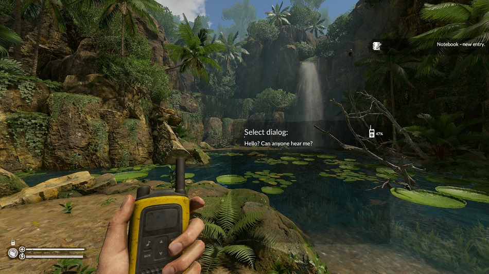 I was impressed by the developers’ commitment to keeping everything as diegetic as possible, meaning there’s almost no content that is not rooted in the world itself, rather than in menus. If I got leeches, I had to look down at my body and pick them off. The notepad does not pause the action, forcing me to flick through pages to the correct entry. If I wanted to light a fire, I had to take my backpack off and go to the right pouch. All of this is mechanically clumsy, but helped root me in the environment with an impressive level of immersion free of menus.