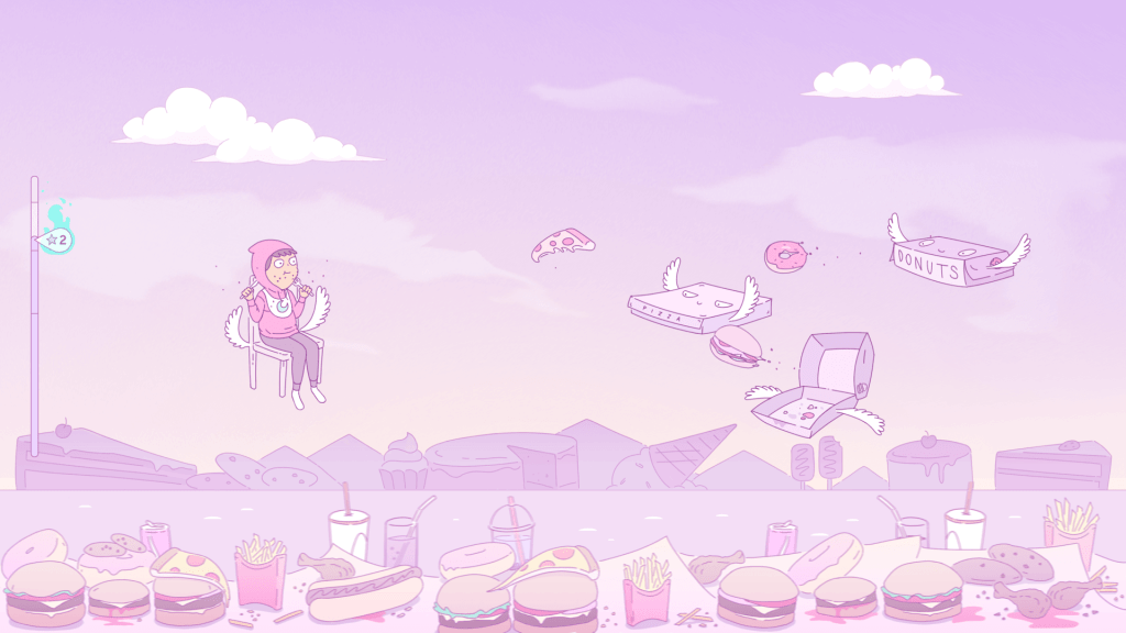 As one might expect of a title named after the brain hormone that helps regulate sleep, Melatonin is about a young person trying to get a good night’s rest. Unfortunately, their brain seems to have other ideas, with stages organized into five “Nights”. Each musical piece is centered around a dream subject, such as “Work,” or “Nature,” or “Space”. Melatonin‘s hand-drawn visuals are excellent, with character art and lines reminiscent of modern cartoons and a light, pink-and-pastel color scheme.