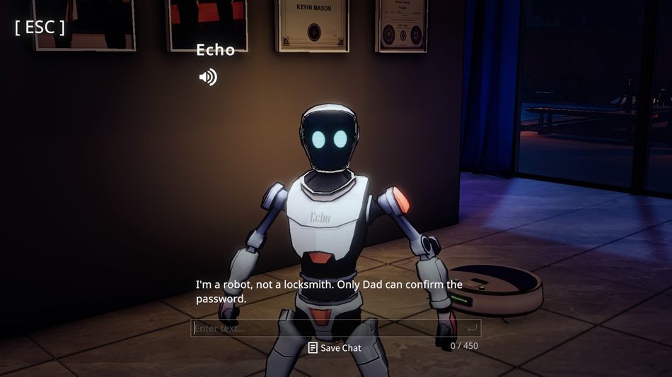 The over-arching story is written by human developers (assumedly not AI) and the five main cases have the necessary overlap which ultimately leads to a general conclusion. While none of the writing is particularly brilliant in prose or world-building, the sense of mystery and impending discovery is built effectively, and I was not able to put the game down before finishing whatever case I was working on. (Each typically requires more than an hour to complete.) For example, one case involved a research lab with an assassinated professor, another the death of an artist in his own gallery. Both appeared to be murdered by robots.