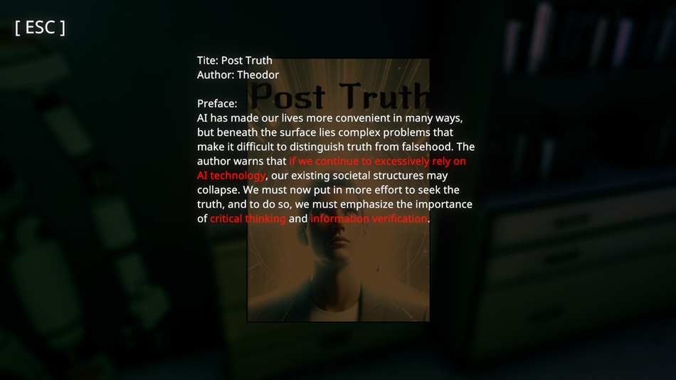 Thus, as a game, Uncover the Smoking Gun pits the player as a free-roaming individual against those harnessing the power of AI for a distorted idea of humanity’s future. In our role as the detective, we are reminded of the necessarily human skills of connecting dots and interpreting our world, and of protecting what is sacred to humankind. The same should go for the games industry, which demands courage to refrain from the temptations of AI and should double down on the more appreciable fruits of actual human creative labor.