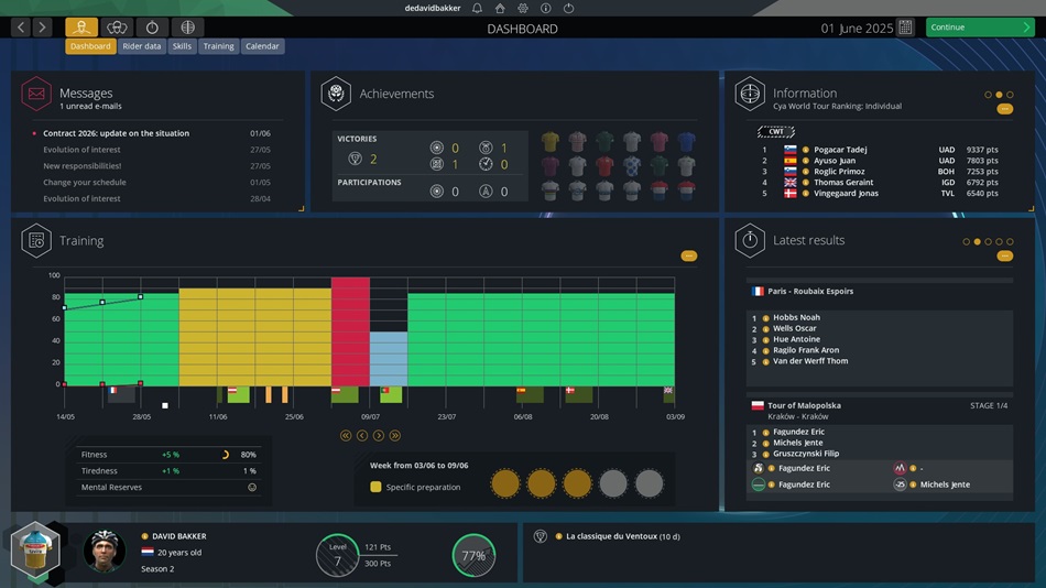 The PCM formula is simple but fertile — menu simulation in commercial team manager or pro cyclist career modes, where calendars with training schedules are planned for months in advance, to ensure peak performance in the most important races. These races themselves can be quickly simulated or more elaborately played out in a 3D format. In the latter, players can actively control their team’s riders, including how much effort they will put into their pace, when (and if) they attack, or whether they decide to closely observe and follow a competitor.