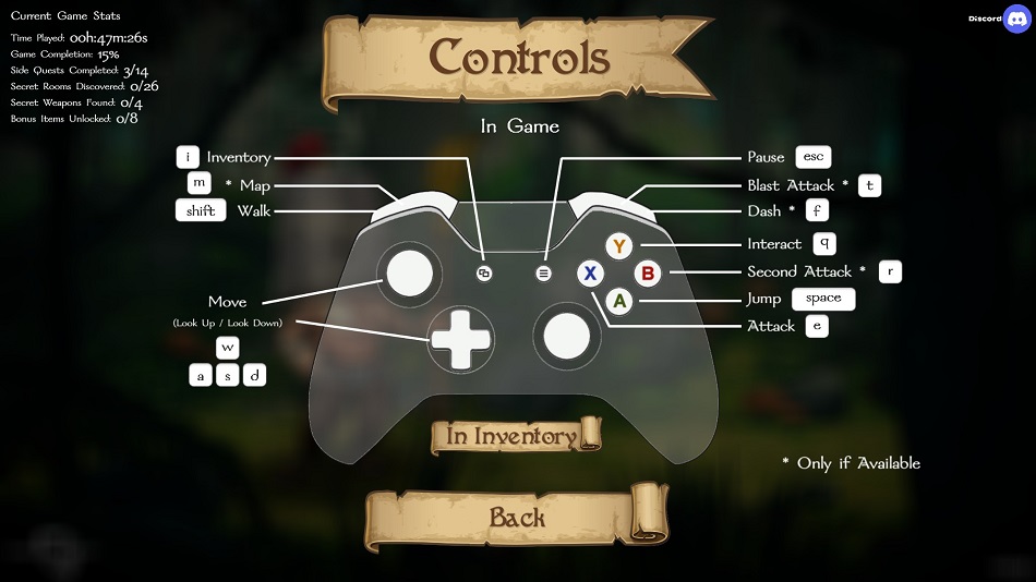 Remappable Controls: The game is controlled via the keyboard or gamepad (see diagram), with the D-pad to move around, A to jump and X to attack. Controls cannot be remapped.