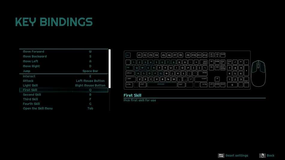 Remappable Controls: The game can be controlled via gamepad or classic keyboard and mouse combination, using the mouse to look around and shoot with the left button and moving around and using objects with the keyboard. It is possible to remap the controls.