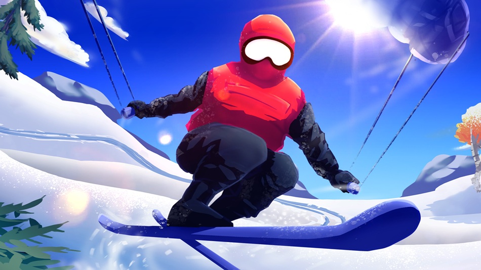 Building on this artistic styling is the diegetic soundscape — with the exception of a wooden clap that signifies a scoring combo, all sound emerges from the world itself. The soft brush of the skis is only interrupted by the hushed winds as a skier launches from a drift, adding musicality and rhythm to the play.
