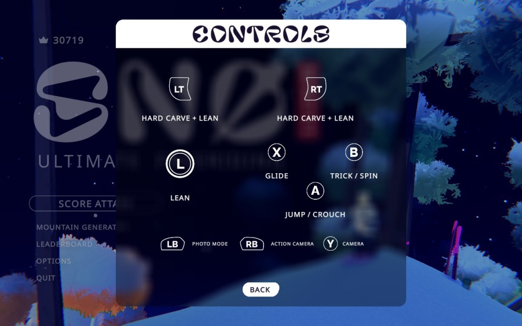 Despite the score chase, finding the rhythm is the real joy of SNØ Ultimate Freeriding, and as the mechanics finally clicked I found myself more entranced by the grace of my skier spinning through the air than by the points I might earn. These moments of beauty became my motivation and, coincidentally, I began climbing the leaderboards. When I tried thinking tactically, planning my movements in advance, scraping by every tree I could to boost my score, I was rarely successful. Freeing myself from that drive allowed instinct to guide my slalom, and suddenly navigation became more natural, and the time between restarts got longer and longer. The developers clearly intended this, as an appropriately titled “Zen Mode” fully foregrounds the aesthetic play by eschewing the score chase altogether.