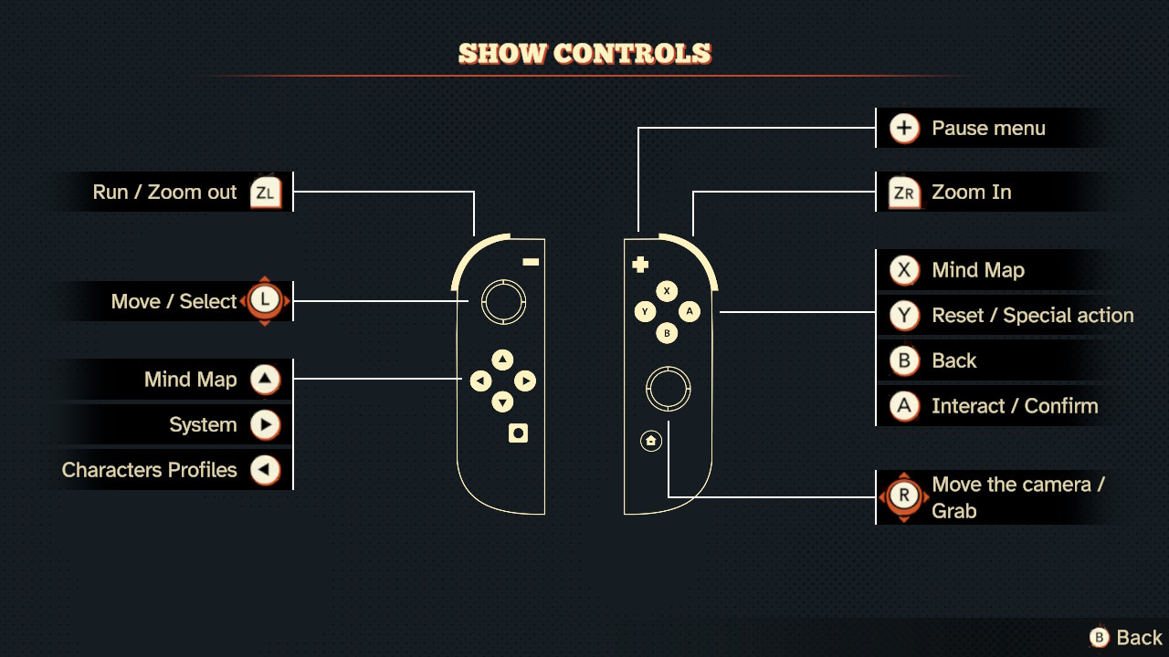 Remappable Controls: This game offers a controller diagram, and the controls are not remappable. However, they are intuitive and easy to get used to, with the movement assigned to the sticks and the face buttons used to make choices and interact with the environment.