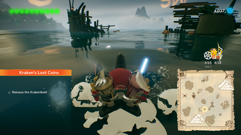 Within each level the player will have a set of missions such as destroying ships, defeating enemies, or collecting items. Once these goals have been completed, a boss will be unlocked to complete the world. However, there’s so much more to do besides simply beating each boss. Every level has an abundance of secret areas to uncover, fellow Bobs to free from cages, and items to collect. One of my favorite parts of Bang on Balls was an “ah ha!” moment in the Viking level when I came across secret cave cleverly tucked out of view that led to a water-filled underground cavern. It made me realize just how well-crafted Bang on Balls is.