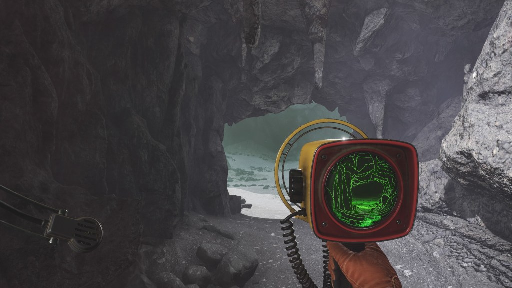 Players will go about solving that mystery in the manner of a first-person exploration game — the kind some jokingly call “walking simulators”. In its opening moments, The Invincible gestures convincingly to the minutiae of survival simulators by having Yasna check her spacesuit for damage, carefully doing an inventory of her backpack, and perusal of her mission log, giving herself (and the player) an initial set of objectives. However, these actions are less an introduction to a set of gameplay systems (such as maintaining hunger or oxygen supplies) than a way to establish Starward Industries’ expertise at first-person navigation and immersive presentation. Other than a few small HUD elements to help players orient themselves, almost all functions are represented diegetically by using objects or mechanisms in the world of the game rather than abstractions.