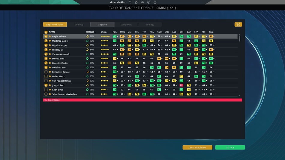 There are typically two playing positions in such a managerial sim, either start from the top, from the vantage point of a team (close to) competing for wins, or from the bottom while building a team or cyclist from a lower ranking in a process that takes multiple in-game years. The advantage to the former position is the possibility of simulating road cycling season 2024 from within the current peloton, whereas the bottom-up option allows one to imagine what the future of road cycling could look like.