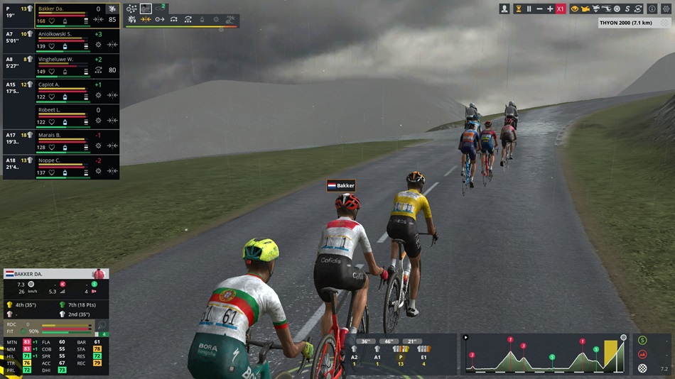 In PCM, certain strategies are favored over others. Attacking is highly inefficient stamina-wise, so winning a mountain stage with an attack is unlikely, unless there are more than the usual fine margins between riders. At the same time, my pro cyclist, developing into a top level climber and stage racer, could not follow any attacks by punchier climbers, nor make up ground by a sustained effort due to the AI suddenly coordinating their efforts perfectly.