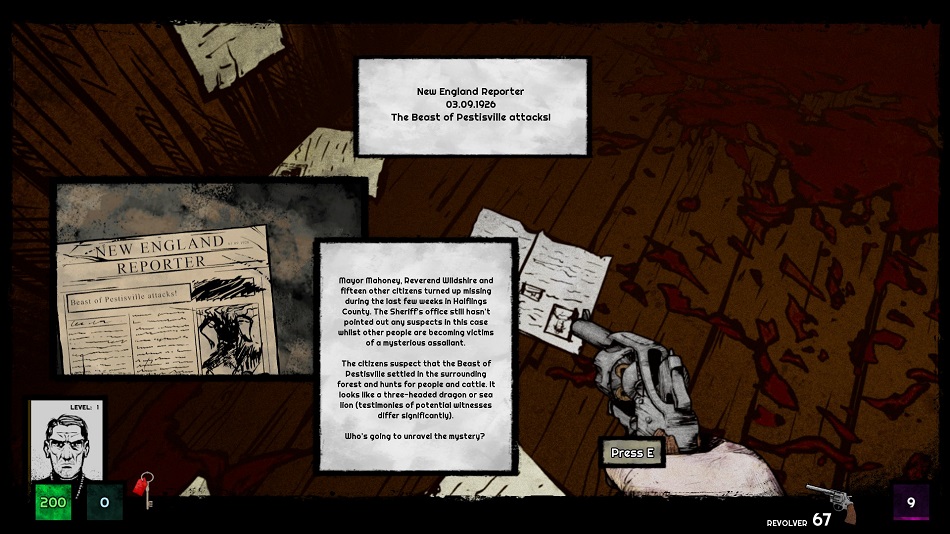 It’s been a while since we’ve seen a strictly Lovecraftian FPS and Forgive Me Father delivers on that premise, featuring several Cthulhu-influenced enemies like a purple-headed liquidator that shoots green goo, or mental health patients that turn into monsters, along with classic locations like graveyards and sanitariums.