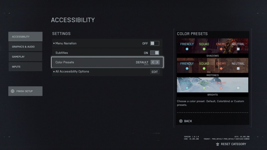 Colorblind Modes: Colorblind modes are present in the options menu.